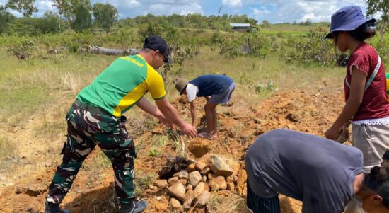 Belu – Dalam rangka mendukung ketahanan pangan di wilayah perbatasan, Satgas Pamtas RI–RDTL Sektor Timur Yonarmed 12 Kostrad melalui Pos Lookeu melaksanakan