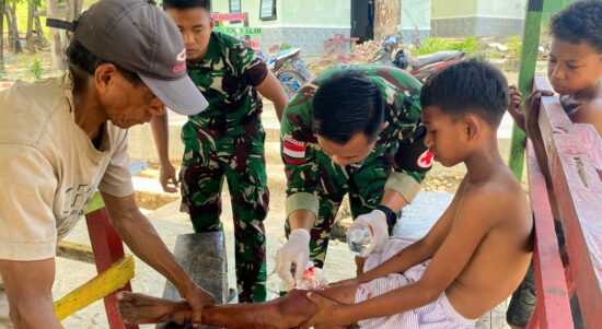 Wujud Bakti TNI di Perbatasan, Pos Salore Yonarmed 12 Kostrad Tangani Warga Luka dengan Sigap