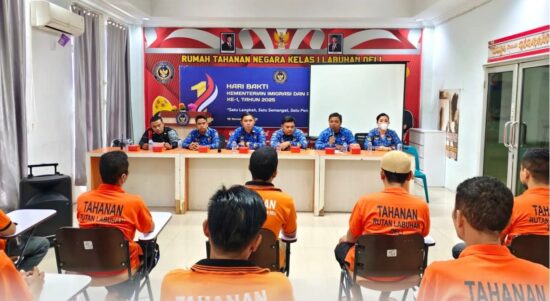 Labuhan Deli – Sebanyak 19 orang Warga Binaan Rumah Tahanan Negara (Rutan) Kelas I Labuhan Deli mengikuti Sidang Tim Pengamat Pemasyarakatan (TPP)