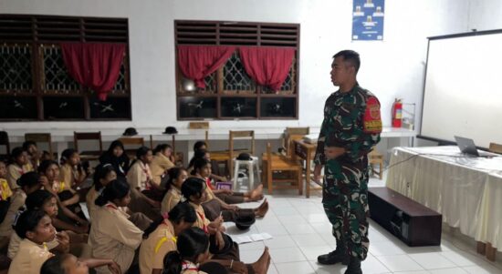 TTU – Dalam upaya menanamkan nilai-nilai bela negara, nasionalisme, dan memperluas wawasan kebangsaan, Satgas Pamtas RI–RDTL Sektor Barat Yonarhanud 2 Kostrad memberikan
