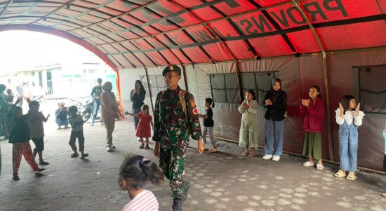 Terpantau prajurit TNI dan Relawan Memberikan Trauma Healing untuk Masyarakat