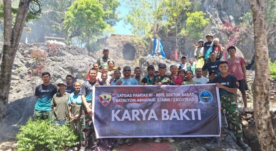 TTU – Personel Makosatgas Pamtas RI-RDTL Sektor Barat Yonarhanud 2 Kostrad mengadakan kegiatan Karya Bakti bersama masyarakat perbatasan guna membersihkan lingkungan Goa