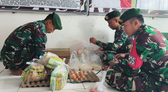 Belu – Personel Pos Fatubesi Atas Satgas Pamtas RI–RDTL Sektor Timur dari Yonarmed 12 Kostrad melaksanakan kegiatan pembagian sembako kepada masyarakat yang
