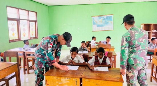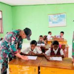 Belu – Dalam upaya mencerdaskan generasi muda di wilayah perbatasan, personel Pos Lookeu Satgas Pamtas RI–RDTL Sektor Timur Yonarmed 12 Kostrad melaksanakan