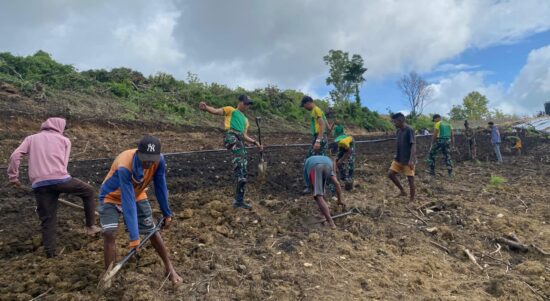 Belu – Satgas Pamtas RI–RDTL Sektor Timur Yonarmed 12 Kostrad melalui Pos Dafala melaksanakan kegiatan karya bhakti dengan membantu masyarakat mengolah lahan