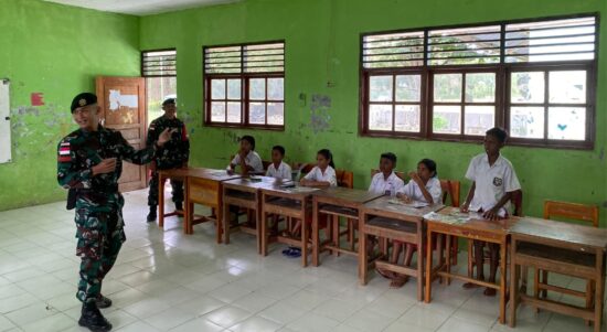 Belu — Satgas Pamtas RI–RDTL Sektor Timur Yonarmed 12 Kostrad melalui Pos Dafala melaksanakan kegiatan Gadik dengan membantu tenaga pengajar di SDK