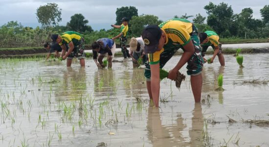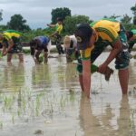 Belu — Satgas Pamtas RI–RDTL Sektor Timur Yonarmed 12 Kostrad melalui Pos Salore melaksanakan kegiatan penanaman bibit padi bersama warga Desa Tulakadi,