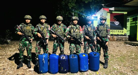Malaka — Satgas Pamtas RI–RDTL Sektor Timur Yonarmed 12 Kostrad melalui Pos Fatuha berhasil menggagalkan upaya penyelundupan BBM ilegal di wilayah perbatasan