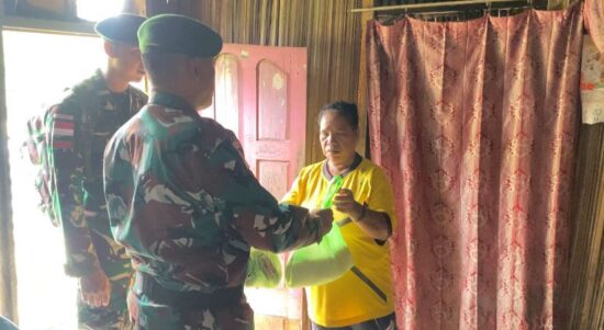 Belu – Satgas Pamtas RI–RDTL Sektor Timur Yonarmed 12 Kostrad melaksanakan kegiatan Jumat Berkah dengan pembagian sembako kepada para lanjut usia (lansia)
