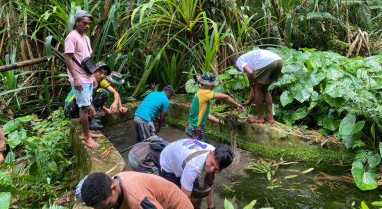 Belu – Personel Pos Dafala Satgas Pamtas RI–RDTL Sektor Timur Yonarmed 12 Kostrad melaksanakan kegiatan karya bakti membantu pengelolaan sumber air bersama