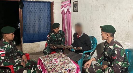 Belu – Satgas Pamtas RI–RDTL Sektor Timur Yonarmed 12 Kostrad melalui Pos Asumanu menerima penyerahan dua pucuk senjata rakitan dari bpk NA