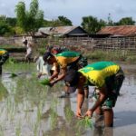 Belu — Satgas Pamtas RI–RDTL Sektor Timur Yonarmed 12 Kostrad melalui Pos Motaain melaksanakan kegiatan penanaman bibit padi bersama masyarakat di Desa