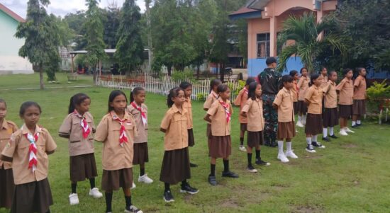 Yonarmed 12 Kostrad Pos Nunura Tanamkan Disiplin PBB kepada Siswa SDN Sekutren