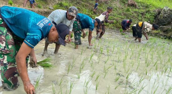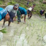 Belu – Satgas Pamtas RI–RDTL Sektor Timur melalui Pos Laktutus melaksanakan kegiatan membantu masyarakat menanam padi di Dusun Fatubesi Atas, Desa Fohoeka,