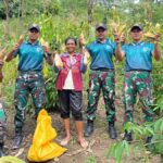 Belu – Personel Pos Nananoe Satgas Pamtas RI–RDTL Sektor Timur dari Yonarmed 12 Kostrad melaksanakan kegiatan ketahanan pangan (Hanpangan) dengan melaksanakan panen