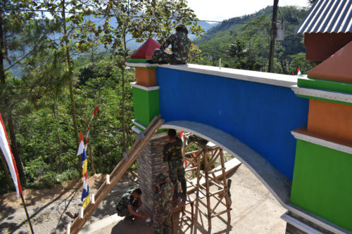 Kepedulian terhadap akses pendidikan di desa sasaran TMMD diwujudkan mereka (Satgas TMMD – red) untuk melanjutkan kembali pewarnaan gerbang sekolah agar terkesan mewah, megah dan menumbuhkan semangat memiliki sekolah, walaupun sekolah desa yang letaknya di pegunungan terusan Dataran Tinggi Dieng di wilayah wewengkon Kabupaten Banjarnegara.
