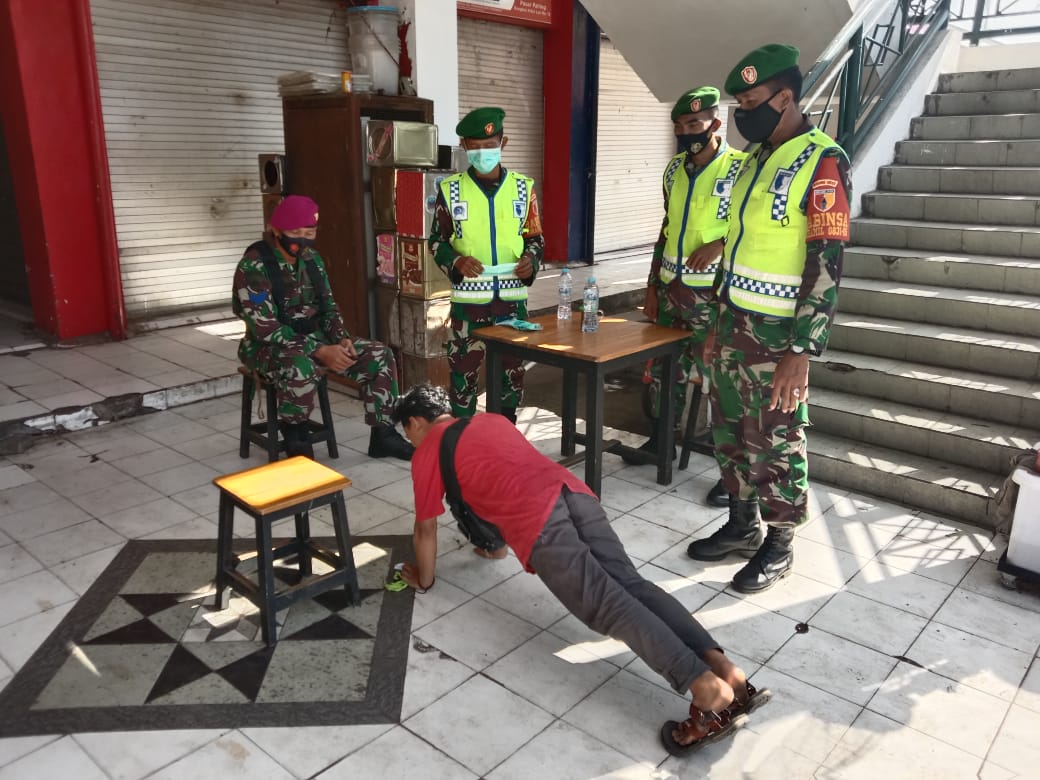 Pelanggar Prokes akan langsung diberikan hukuman sosial berupa Push Up, seperti yang di Pasar Pahing satu pengunjung pasar yang tidak memakai masker langsung diberikan hukuman sosial sebelum diberikan masker oleh TNI wilayah Koramil Rungkut untuk dipakai saat itu juga, selain tidak memakai masker, ada lima pelanggar yang memakai masker tidak benar.