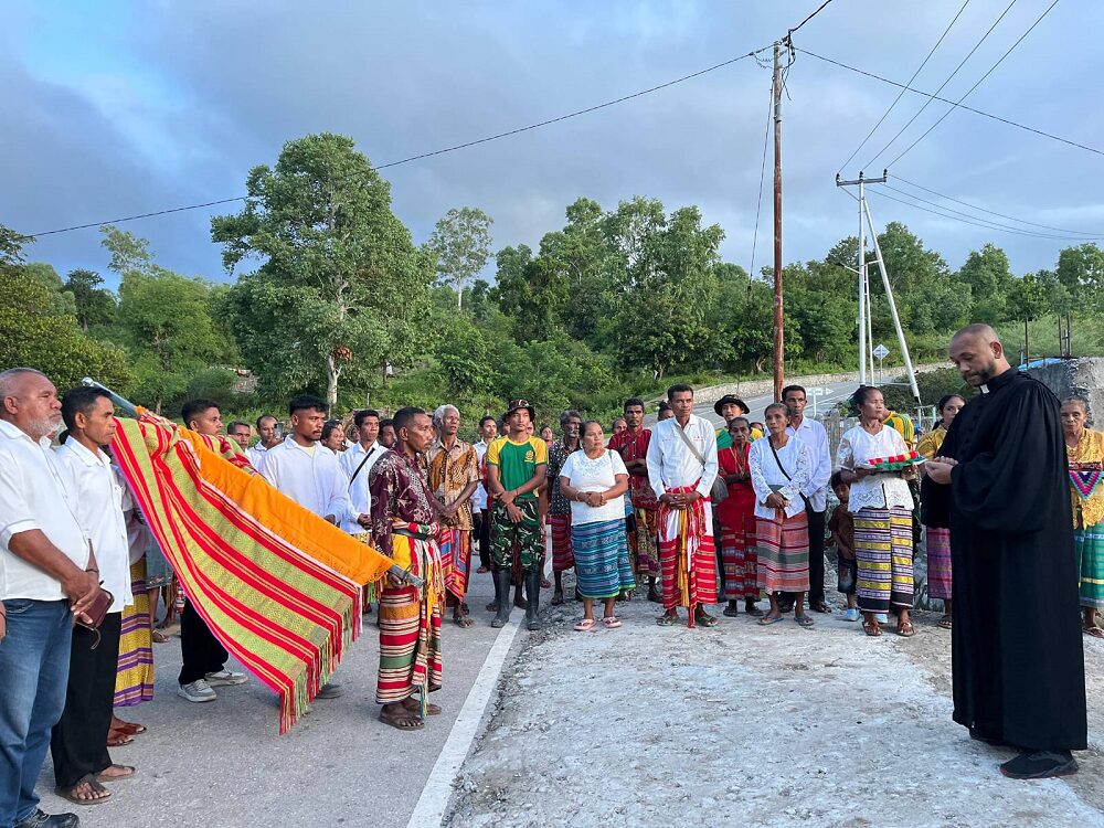 Prosesi diawali dengan rangkaian adat dan tradisi umat Protestan yang dipimpin oleh tokoh agama setempat. Para prajurit Pos Oepoli Sungai nampak berbaur dengan warga, bahu-membahu secara sukarela membantu pemasangan salib hingga berdiri kokoh di puncak gereja.