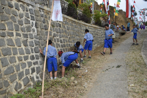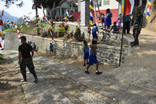 Oleh karena itu, dipimpin Letda Inf. Sumeri, Danton SSK Satgas TMMD dari Yonif 406 Chandra Kusuma menggalang para murid SD 1 Pasegeran untuk mengganyang sampah di jalanan tentunya atas ijin dari Kepala Sekolah, Umi Saidah (49).