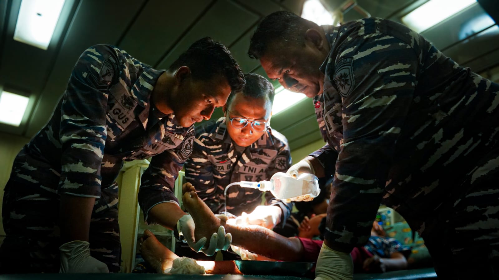 Pada Jumat (12/12), tim medis KRI dr. Soeharso-990 (SHS) saat lego jangkar di Perairan Aceh Tamiang dibantu dengan kapal-kapal nelayan menuju lokasi terdampak bencana. Kemudian para tim medis melaksanakan screening terhadap korban terdampak. Menurut informasi dari masyarakat bahwa terdapat anak kecil, korban banjir, menderita patah tulang kaki.