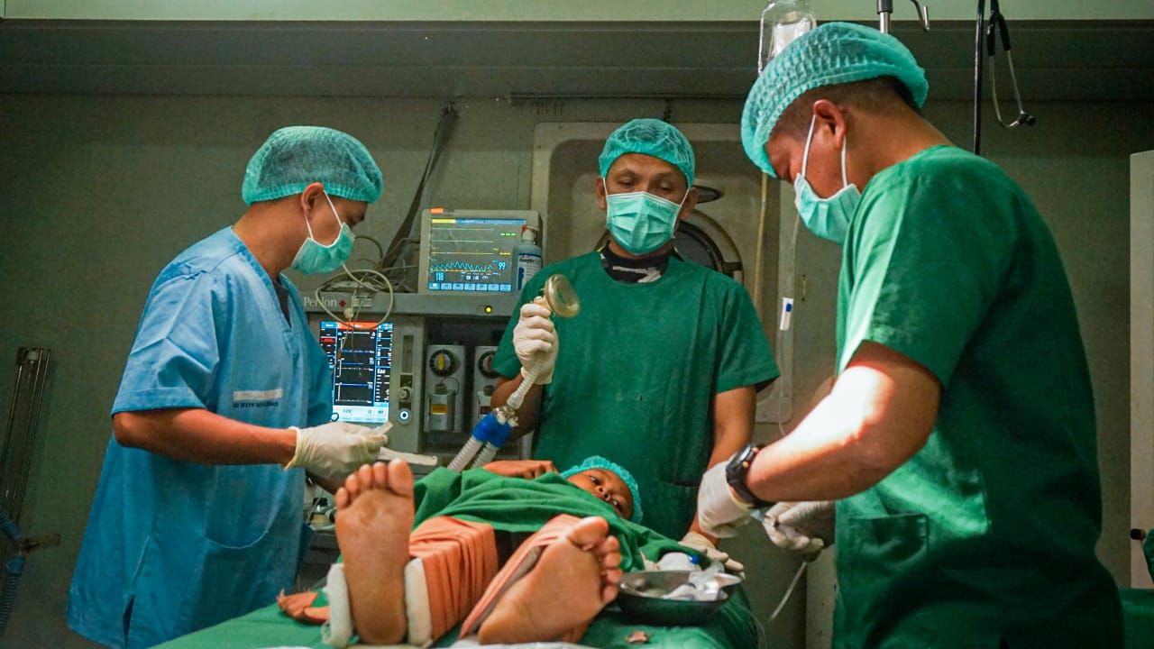 Selanjutnya pasien dievakuasi menuju KRI SHS-990 dan segera dilaksanakan assessment. Pasien mengalami patah tulang cruris terbuka di sebelah kiri, dan patah tulang tibia sebelah kanan. Sehingga tim medis bersama Persatuan Ahli Bedah Ortopedi Indonesia (PABOI) yaitu dr. Charles Apulta Meliala, Sp.OT-CFA dan dr. Budi AM Siregar, Sp.OT., memutuskan untuk melakukan tindakan operasi pada pasien di atas kapal.