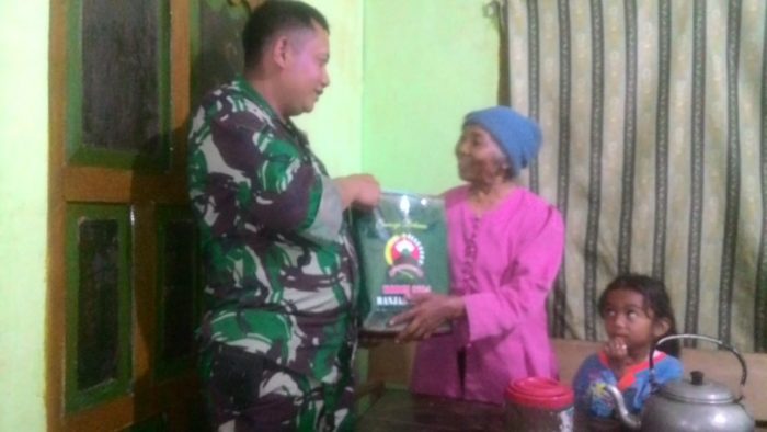 PB|BANJARNEGARA – Turinah (60) warga Dusun Kroya Rt. 05 Rw. 03 Desa Pasegeran Kecamatan Pandanarum, adalah salah satu penerima bantuan sembako dari Kodim 0704 Banjarnegara yang disalurkan oleh Babinsa setempat, Serda Suwondo. Kamis (12/7/18).