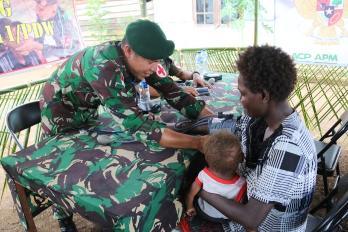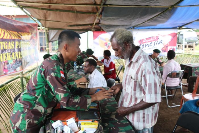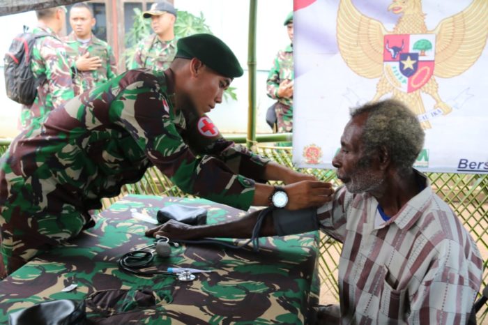 Papua – Prajurit TNI dari Satgas Batalyon Infanteri Mekanis Raider (Yonif MR) 411/Pdw Kostrad, beberapa waktu lalu menggelar pengobatan massal dalam rangka HUT Ke-74 RI di perbatasan Republik Indonesia – Papua Nugini (RI-PNG), tepatnya di Kampung Tomerau, Distrik Naukenjerai, Kab. Merauke, Papua.