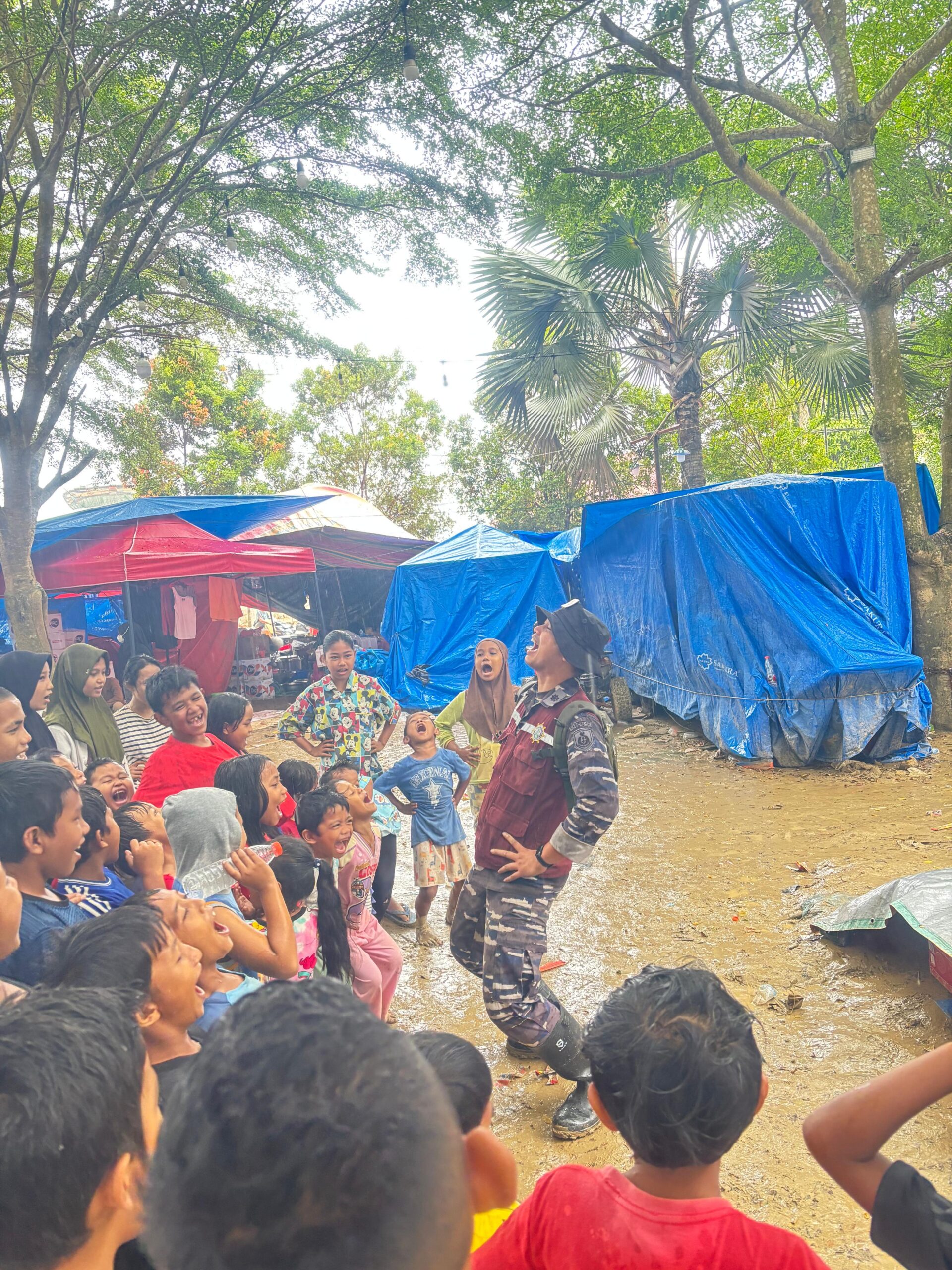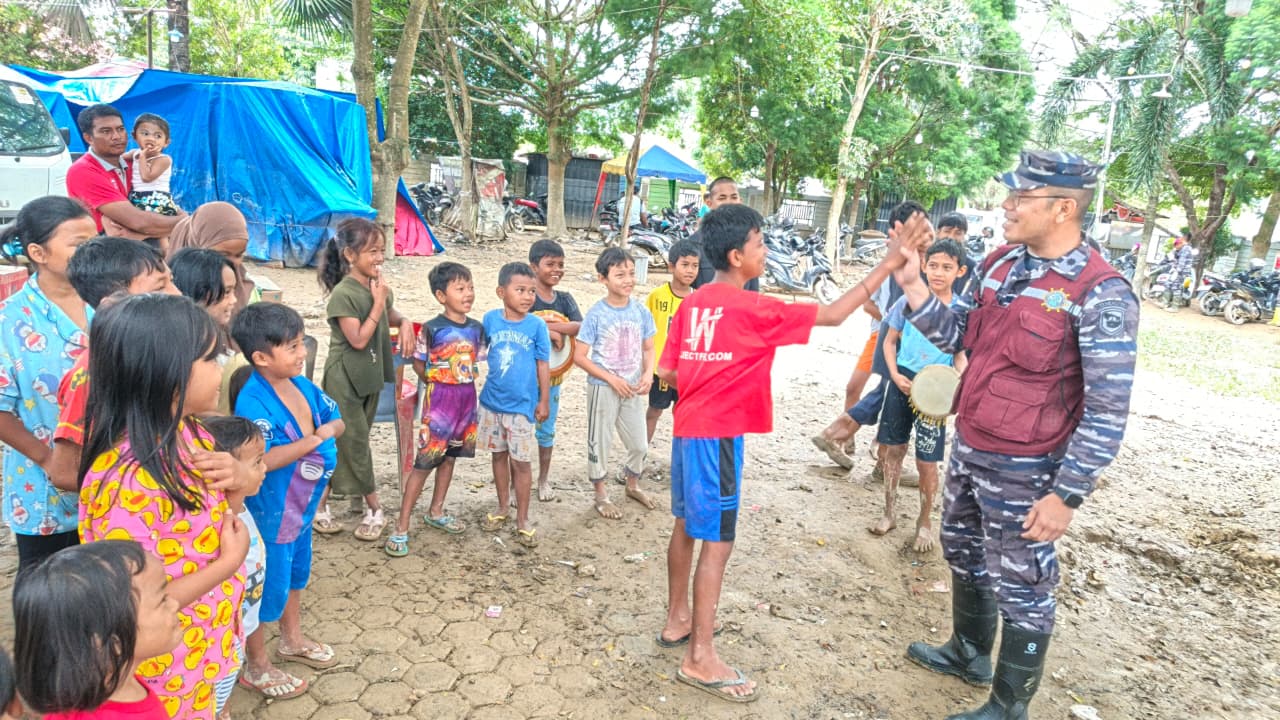 Tim Trauma Healing yang dipimpin oleh Mayor Laut (KH) Junaid Ridha Akbar, M.Psi., Psikolog selaku ketua tim, melaksanakan layanan trauma healing khususnya kepada anak-anak yang terdampak bencana.