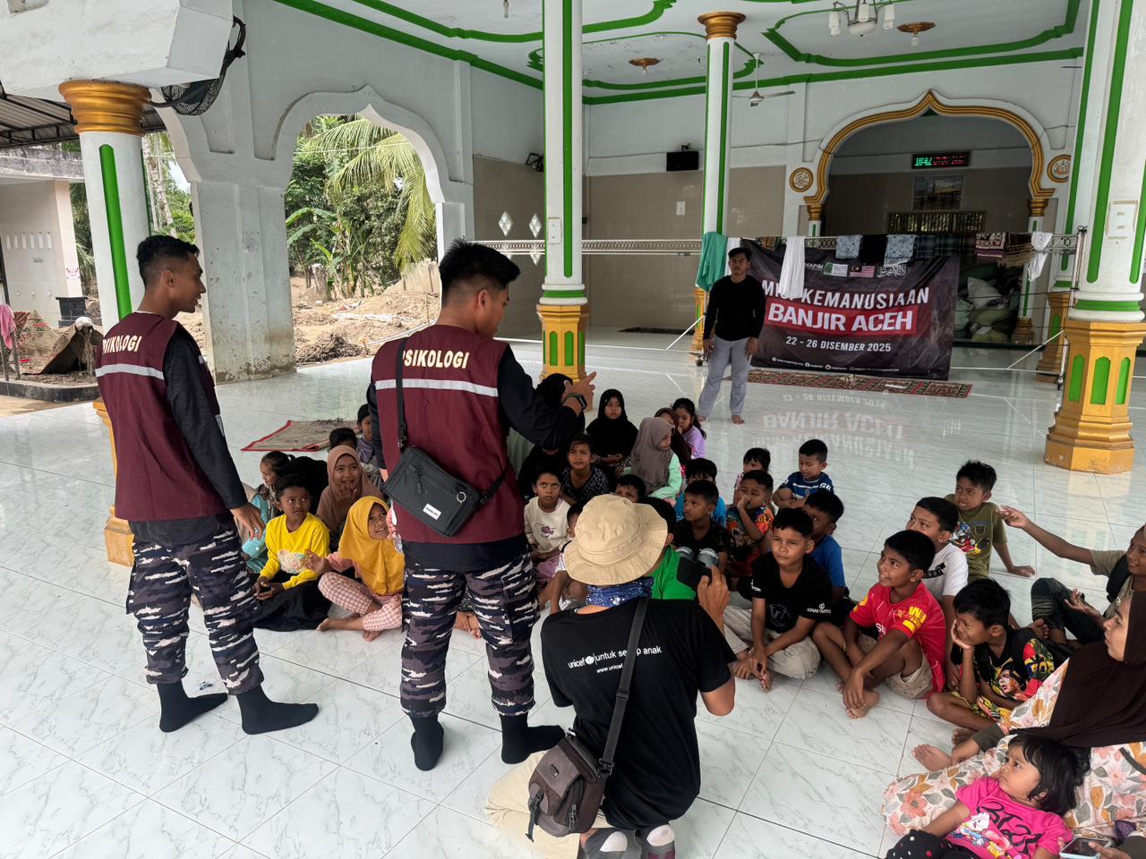 Bireuen, 30 Desember 2025,— Di tengah kepulan duka pascabencana yang melanda Kabupaten Bireuen, secercah senyum kembali terukir di wajah anak-anak pengungsian wilayah Peusangan. Pada Selasa (30/12), Tim Dinas Psikologi TNI Angkatan Laut (Dispsial) hadir membawa misi khusus memulihkan keceriaan yang sempat hilang akibat trauma bencana.