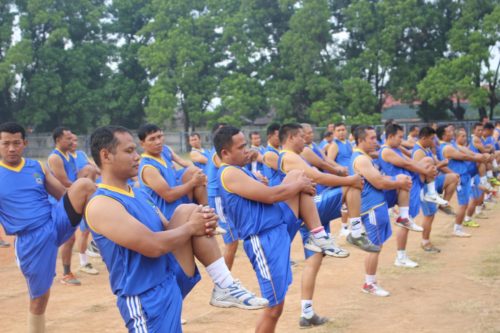 “Pemanasan ini hukumnya wajib, agar dalam pelaksanaan lari ataupun kegiatan lain yang berhubungan dengan fisik tidak terjadi cedera otot.” ujar Serma Heri.