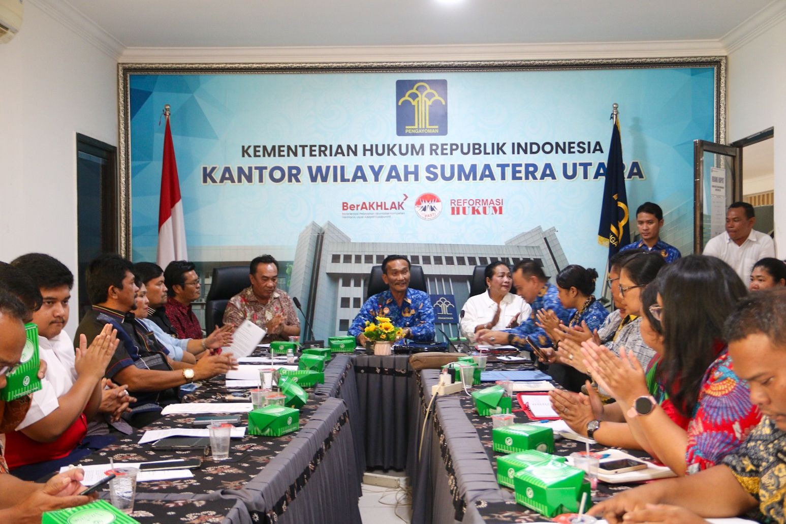 Medan – Kantor Wilayah Kementerian Hukum Sumatera Utara menggelar Rapat Harmonisasi terhadap tiga rancangan regulasi Kabupaten Karo, yang dipimpin oleh Kepala Kantor Wilayah Kemenkum Sumut, Ignatius Mangantar Tua Silalahi, Senin (17/11).