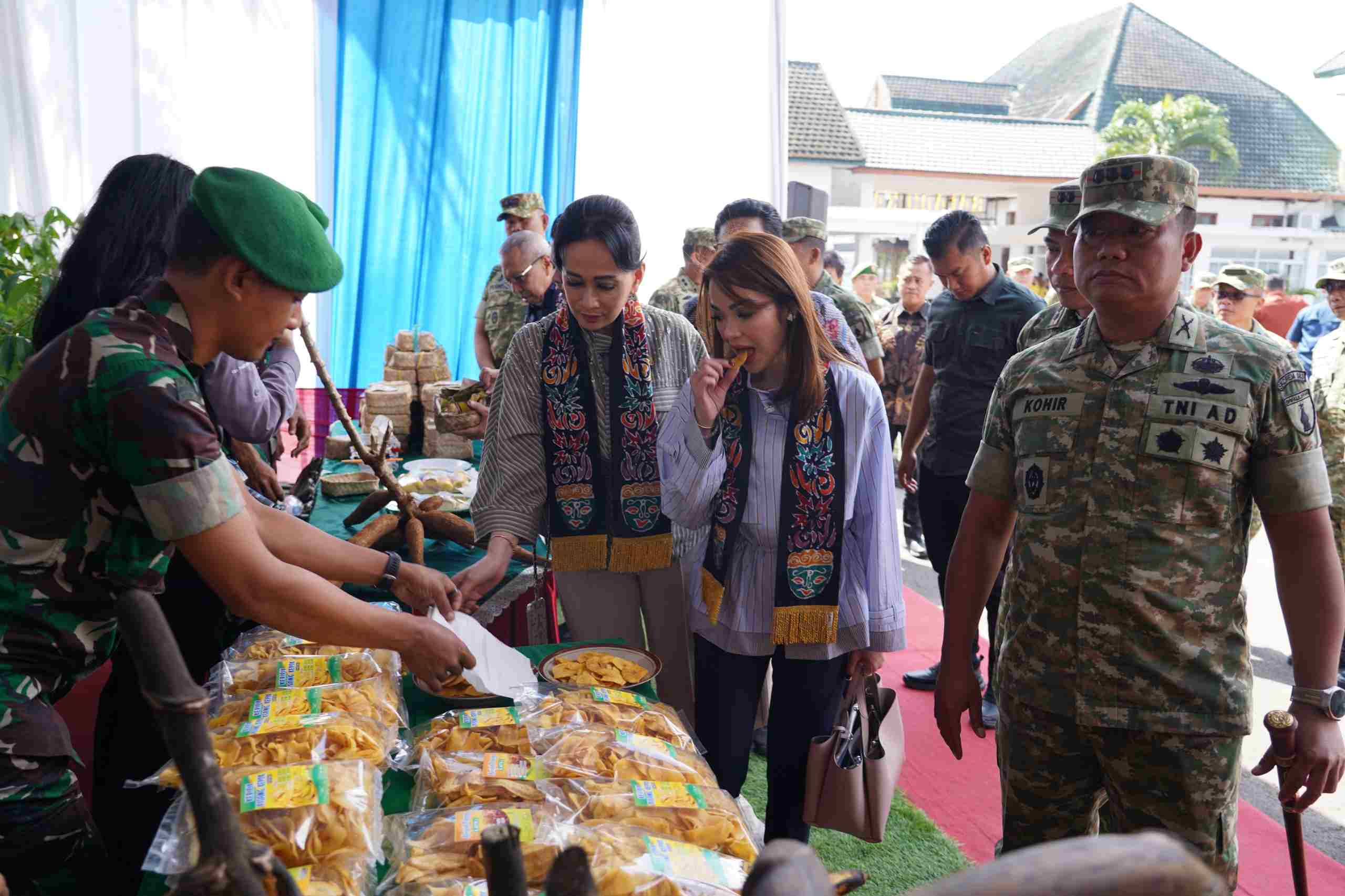 Beragam produk hasil kreativitas prajurit binaan satuan teritorial dipamerkan, mulai dari olahan pangan lokal, kerajinan kreatif, hingga hasil pertanian yang dikembangkan melalui pembinaan Babinsa di wilayah.