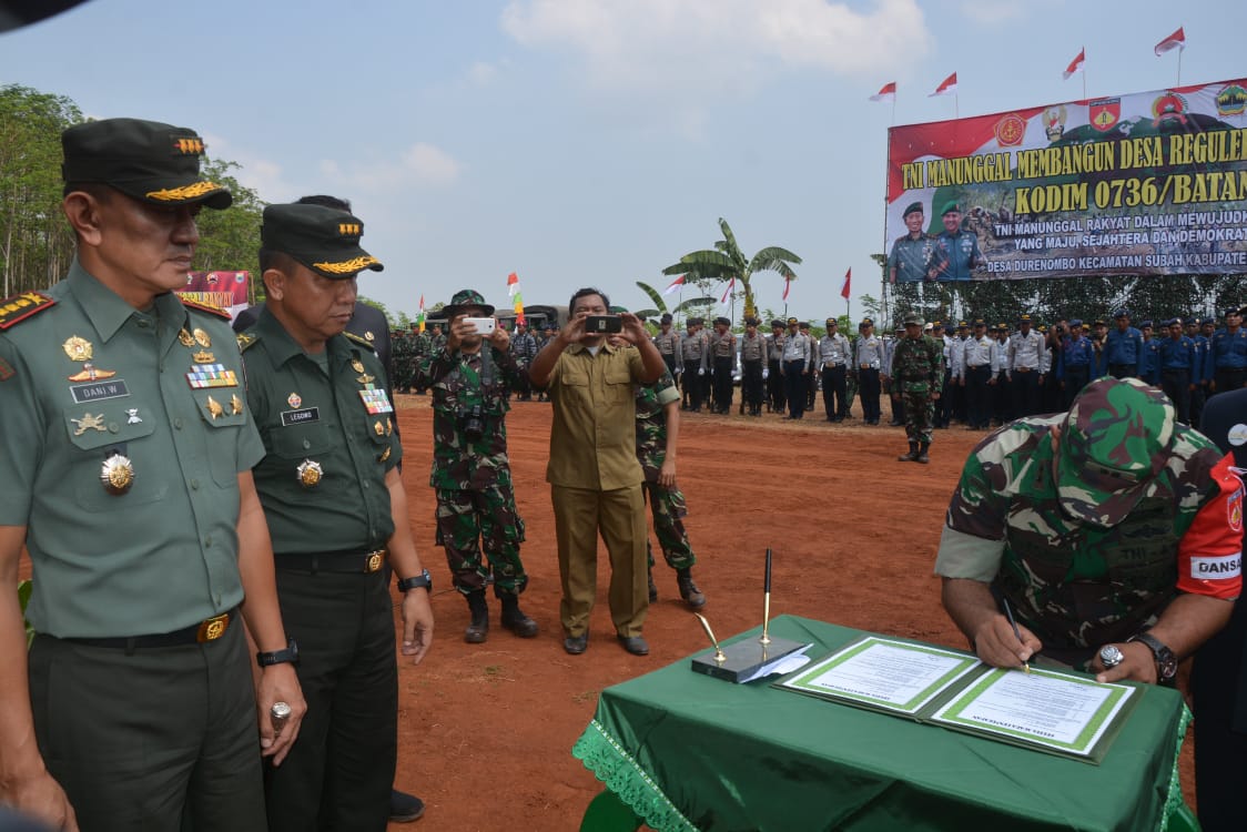 Batang – TMMD Reguler 103 Batang digelontor 1,2 M, hal tersebut disampaikan Kasdim 0736/Batang Mayor Inf Raji saat menyampaikan laporannya program TMMD 103 Kodim 0736/Batang kepada Bupati Batang H. Wihaji, S.Ag. pada Upacara Pembukaan TMMD Reguler Ke-103 Kodim 0736/Batang, Senin (15/10/2018) di Lapangan Desa Durenombo Kec.Subah Kab.Batang.