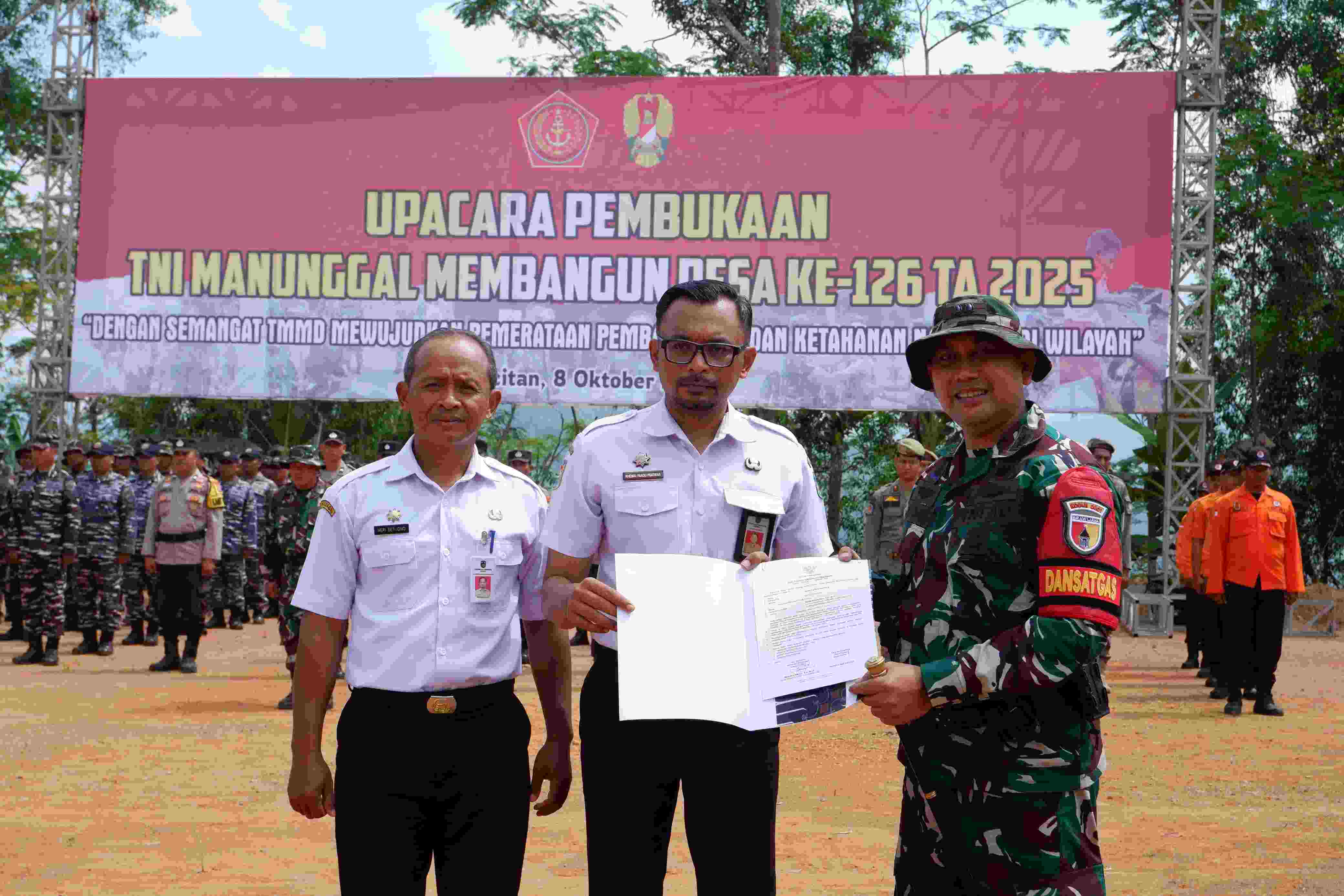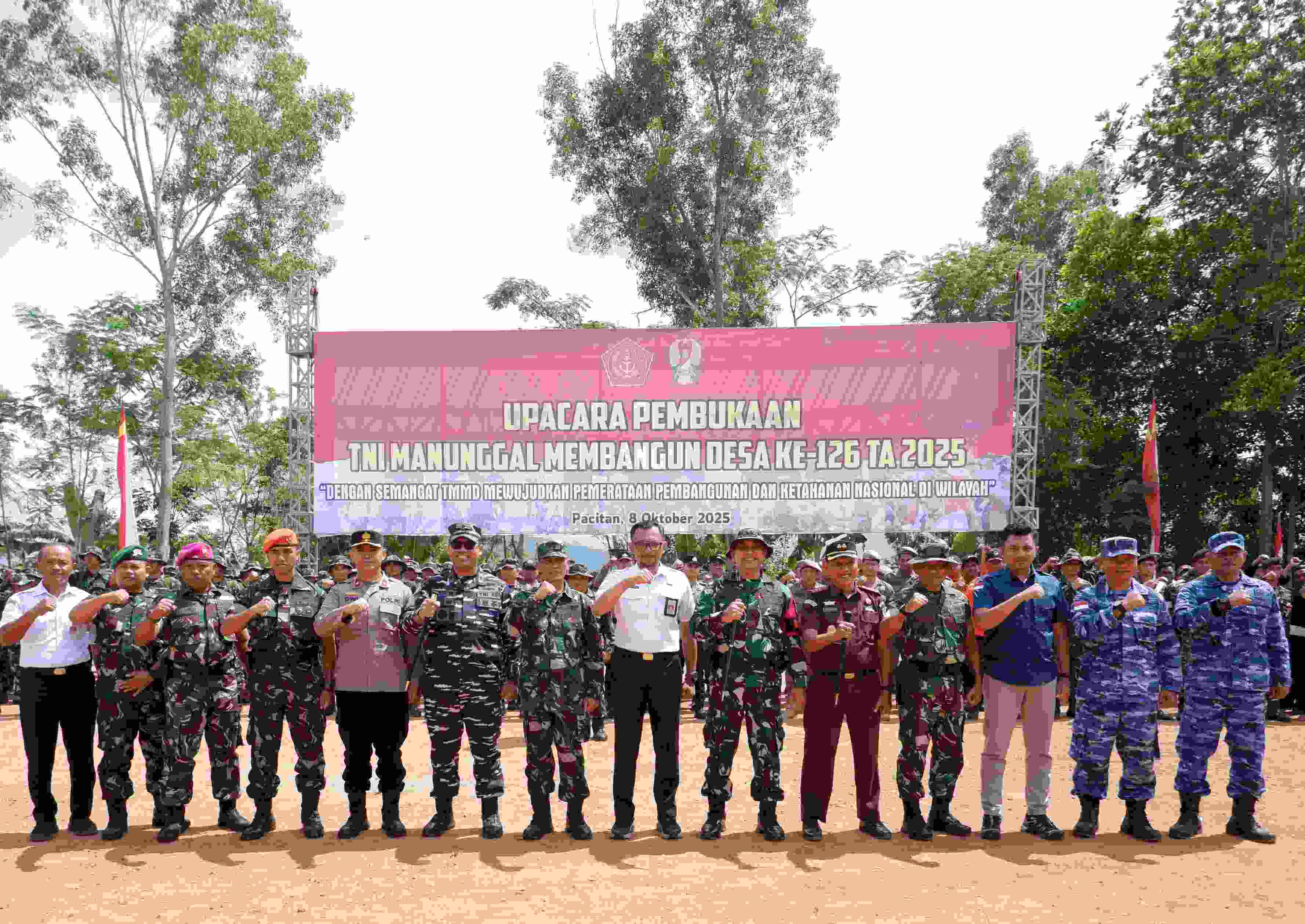Pacitan, – Program TNI Manunggal Membangun Desa (TMMD) ke 126 Tahun Anggaran 2025 Kodim Pacitan resmi dibuka oleh Kemal Pandu Pratikna, S.T.T.P selaku Asisten pemerintahan dan Kesejahteraan Rakyat Setda Pacitan/Plt Dinsos, bertempat di Lapangan Desa Petungsinarang Kec. Bandar Kab. Pacitan, Pada Rabu, (08/10/2025).