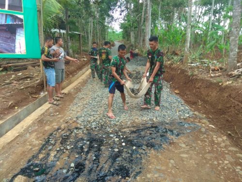 Batang – Kegiatan Pengaspalan Jalan Desa Durenombo, Kecamatan Subah, Kabupaten Batang, yang dilakukan dalam program TMMD ke 103 Kodim 0736/Batang, Selasa (06-11-2018) mencapai 85 persen. Anggota Satgas TMMD ke 103 Kodim 0736/Batang bersama sama warga masyarakat terus kompak untuk menuntaskan hingga 100 persen.
