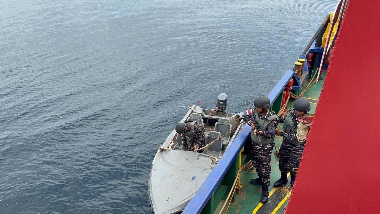 Halmahera, 28 November 2025 — Unsur TNI AL yakni KRI Pari-849 berhasil mengamankan sebuah kapal yang diduga melakukan pelanggaran pelayaran serta pengangkutan ore nikel ilegal di wilayah perairan Sulawesi Tenggara. Kamis (27/11).