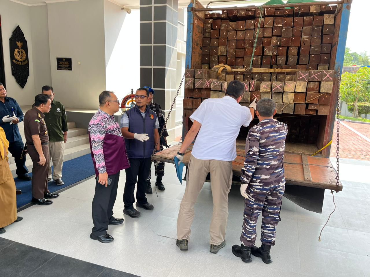 Adapun barang bukti yang berhasil diamankan berupa kayu ulin sebanyak 6,6312 meter kubik dengan nilai kurang lebih Rp200.000.000,- yang diketahui akan dikirim oleh CV. Mandiri Perkasa dengan tujuan Pare-Pare.