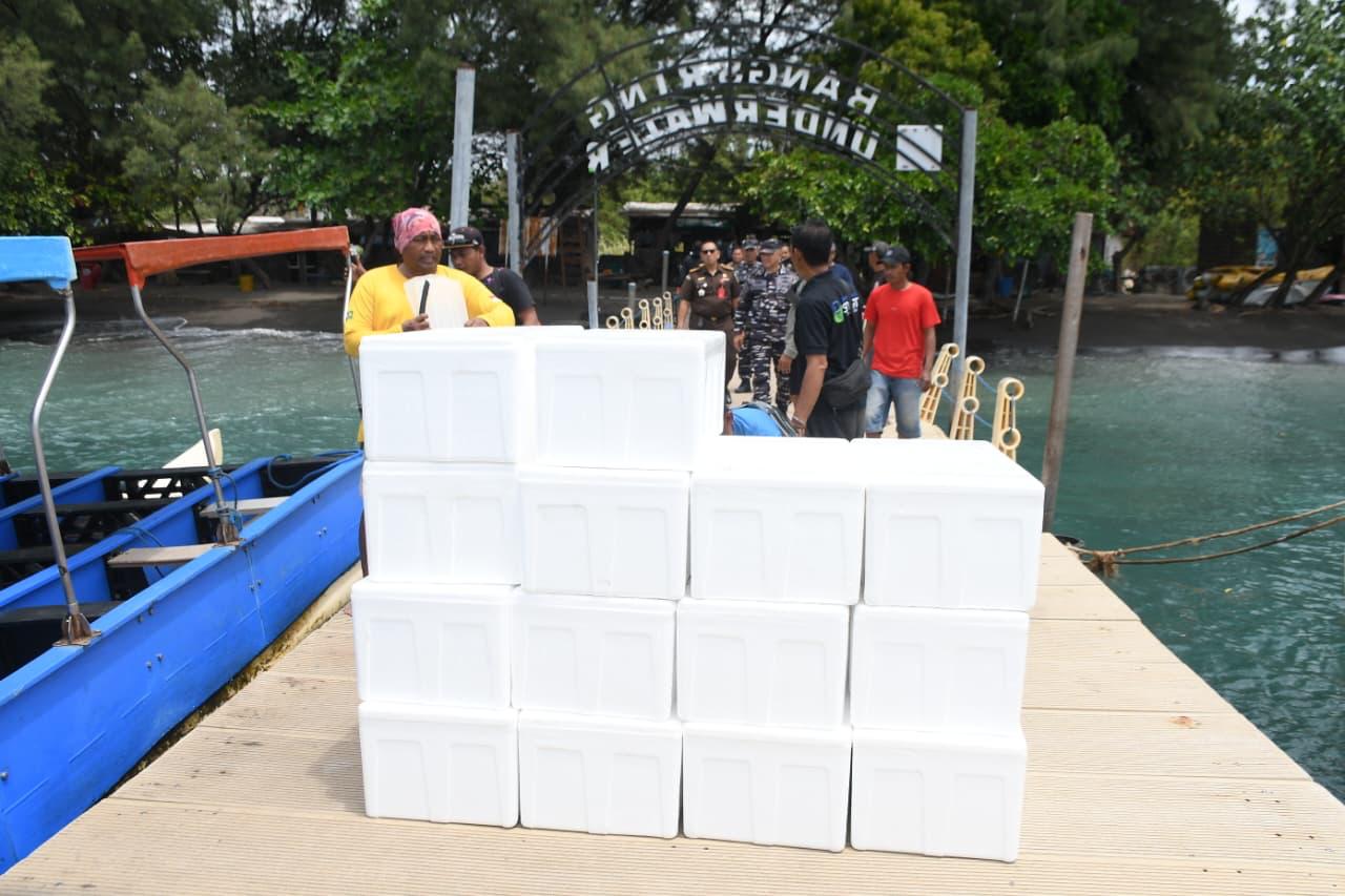 Lebih lanjut disampaikan bahwa pada hari Senin kemarin telah melaksanakan pelepasliaran barang bukti BBL ke habitatnya di Bangsring Underwater dengan disaksikan oleh stakeholder terkait antara lain pihak Kejaksaan Negeri Banyuwangi dan PSDKP Benoa yang diwakili Satwas PSDKP Muncar Banyuwangi. Untuk barang bukti BBL yang ada dihadapan kita ini adalah sisa barang bukti sejumlah 1 box dari 16 box yang sudah dilepasliarkan, yang nantinya akan lepasliarkan bersama di Bangsring Underwater.
