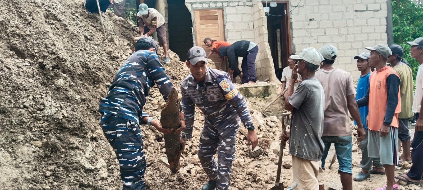 Dengan alat seadanya namun penuh semangat, personel gabungan TNI AL dan TNI AD bersama masyarakat setempat melakukan pembersihan material, mengevakuasi puing-puing bangunan dan timbunan tanah yang menutupi akses serta area rumah, melakukan perkuatan sementara pada struktur tanah guna mencegah adanya longsor susulan yang membahayakan jiwa, serta membantu menyelamatkan harta benda milik warga yang masih bisa diselamatkan dari reruntuhan.