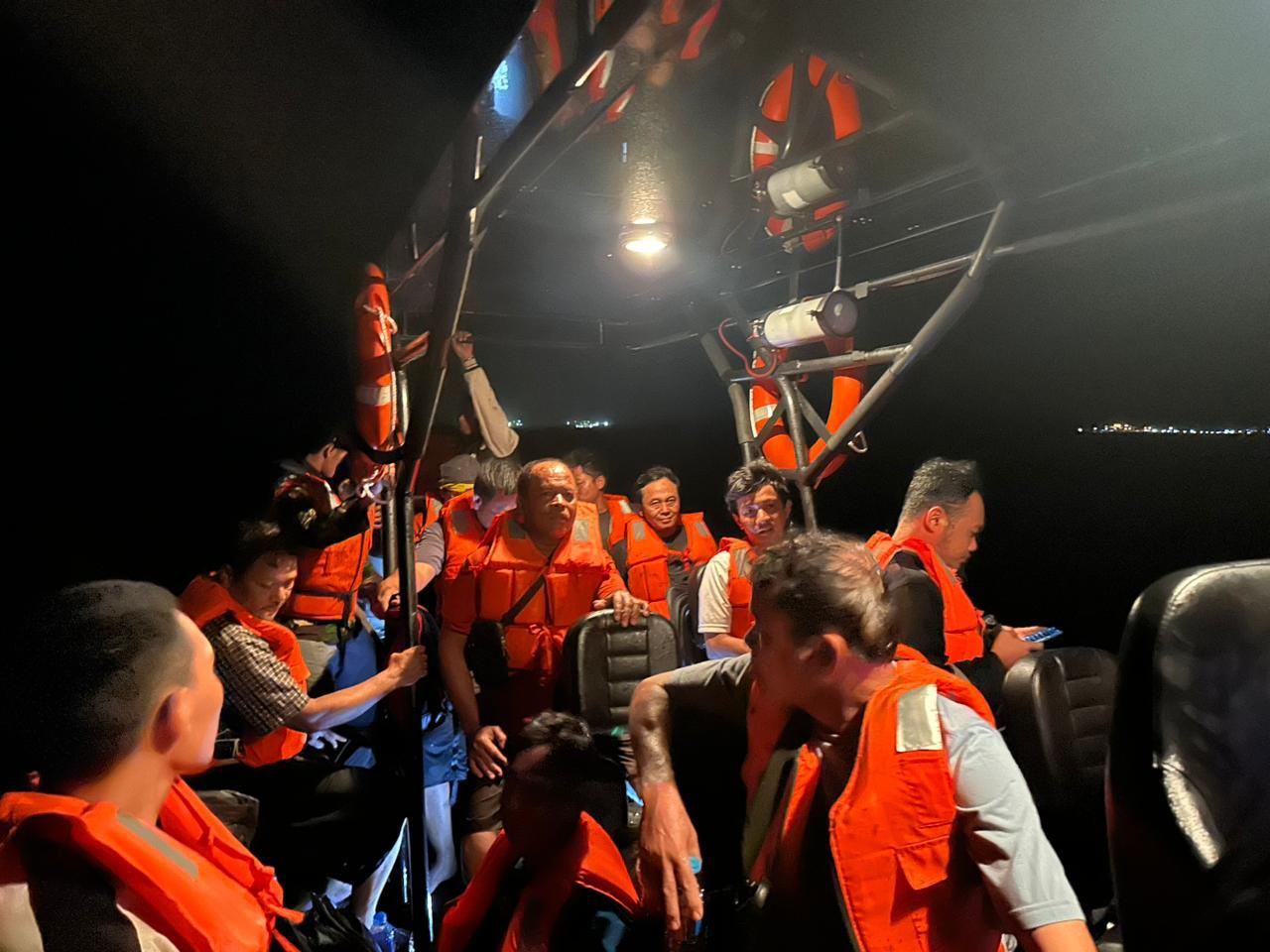 Menerima laporan darurat tersebut, unsur patroli Lanal Tanjung Balai Karimun segera dikerahkan menuju lokasi kejadian. Pada pukul 23.32 WIB, tim patroli berhasil tiba di perairan Kanipan dan melaksanakan proses evakuasi dengan aman. Seluruh 19 awak kapal berhasil diselamatkan dan dibawa menuju Mako Lanal Tanjung Balai Karimun untuk mendapatkan pemeriksaan serta penanganan lebih lanjut.