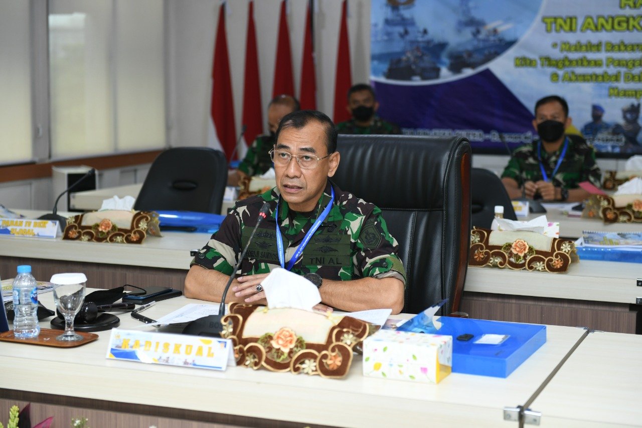 Jakarta – TNI Angkatan Laut (TNI AL) dalam hal ini Dinas Keuangan Angkatan Laut (Diskual) menggelar Rapat Kerja Teknis Keuangan (Rakernisku) II TNI AL TA 2021, secara virtual atau Video Conference (Vidcon) yang diikuti Para Kepala Keuangan Wilayah (Kuwil) dan Kepala Akun serta BP di jajaran Badan Keuangan di Lingkungan TNI AL. Kamis, (25/11).