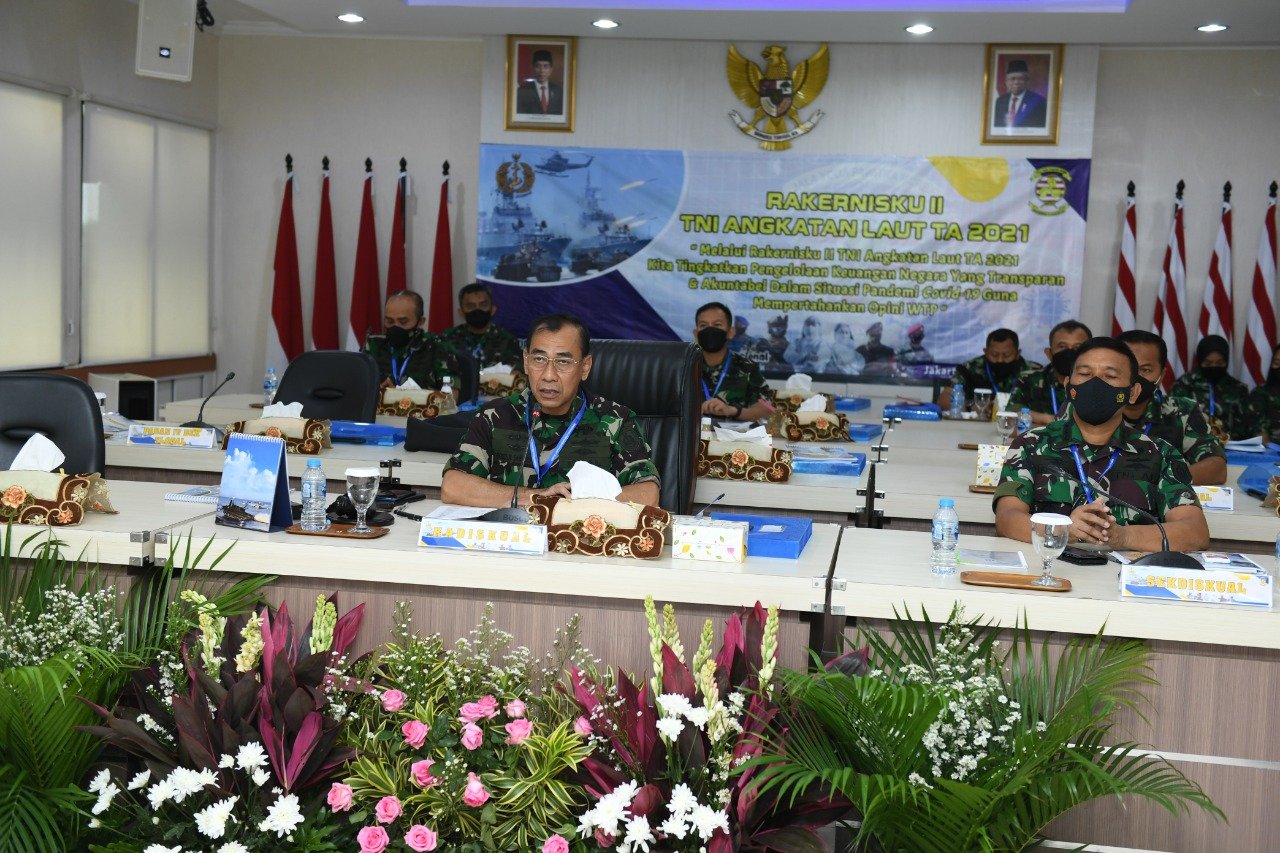 Kegiatan yang yang mengambil tema “Melalui Rakernisku II TNI Angkatan Laut TA 2021 Kita Tingkatkan Pengelolaan Keuangan Negara Yang Transparan dan Akuntabel Dalam Situasi Pandemi Covid-19 Guna Mempertahankan Opini WTP.” diikuti oleh 22 Keuangan Wilayah (Kuwil), 108 Akun dan 139 BP, dengan virtual dengan tujuan menghindari penyebaran Virus (Covid-19).