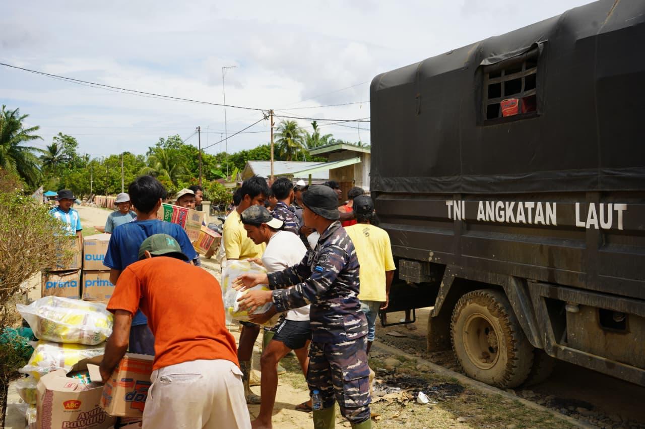 Prajurit TNI AL turut terjun langsung ke lokasi-lokasi terdampak dengan menyusuri desa-desa yang terendam banjir, memastikan bantuan diterima secara tepat sasaran. Selain menyalurkan bantuan logistik, prajurit juga membantu masyarakat dalam proses distribusi serta memberikan dukungan moril kepada warga yang terdampak bencana.