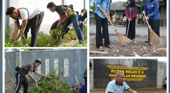 Dalam Rangka Hari Bhakti Pemasyarakatan ke-62, Rutan Pangkalan Brandan Gelar Gotong Royong Bersihkan Lingkungan