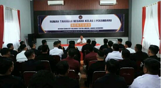 Pekanbaru, — Kepala Kesatuan Pengamanan Rutan (Ka. KPR) Kelas I Pekanbaru, Boni Hasiholan Manullang, memimpin langsung rapat pengamanan yang berlangsung di Aula