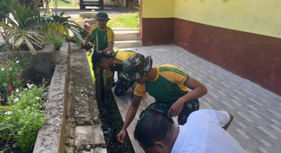 Satgas Pamtas Pos Auren–Fatuha Gelar Karya Bakti Bersihkan Gereja Paroki Alas