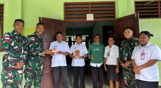 Satgas Pamtas Yonarhanud 2 Kostrad Peringati Hari KORPRI Berikan Bingkisan untuk Guru di Perbatasan