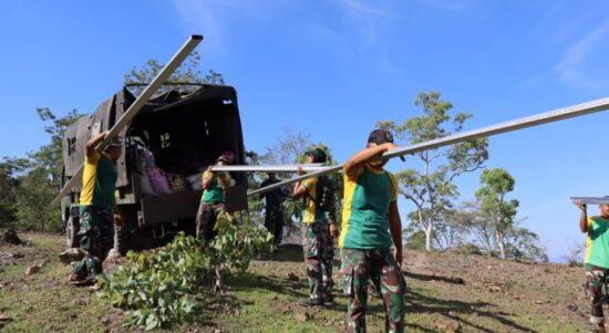 Belu – Satgas Pamtas RI–RDTL Sektor Timur Yonarmed 12 Kostrad berkolaborasi dengan komunitas Sant’Egidio melaksanakan kegiatan bedah rumah berupa pembangunan rumah baru