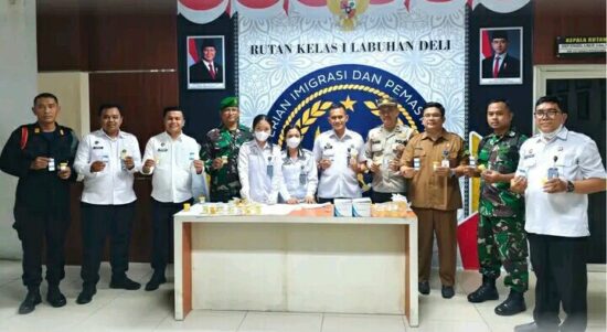 Labuhan Deli – Dalam rangka mewujudkan lingkungan kerja yang bersih dari penyalahgunaan narkoba, Rumah Tahanan Negara (Rutan) Kelas I Labuhan Deli melaksanakan