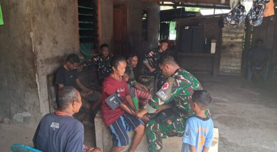 Kupang – Satgas Pamtas RI-RDTL Sektor Barat Yonarhanud 2 Kostrad Pos Oepoli Sungai melaksanakan bakti sosial berupa pelayanan kesehatan gratis yang disambut